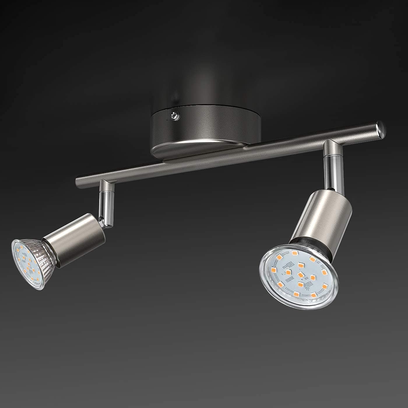 The Uchrolls LED Ceiling Light features two adjustable GU10 spotlights, providing customizable illumination for any room. With a sleek matte nickel design and energy-efficient bulbs, this fixture combines style and sustainability, making it perfect for modern living spaces.