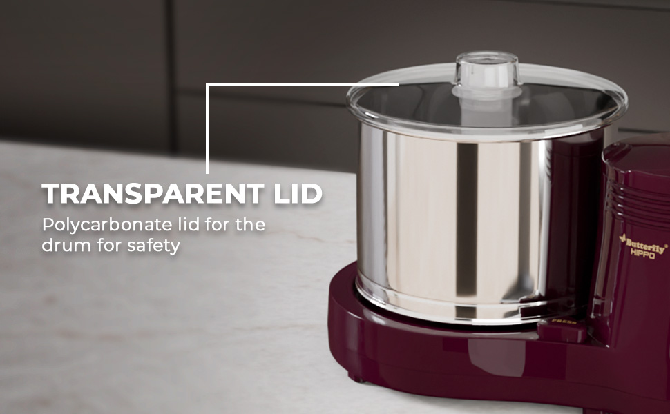 The Butterfly Hippo 2L Wet Grinder combines a robust 150W motor with a shockproof ABS body and a 4-way grinding system to deliver consistent, smooth batters. Its detachable stainless steel drum and roller stones make cleaning effortless, while the unbreakable polycarbonate lid adds safety. Designed for durability and ease, it comes with a 2-year warranty, making it a must-have for every modern kitchen.