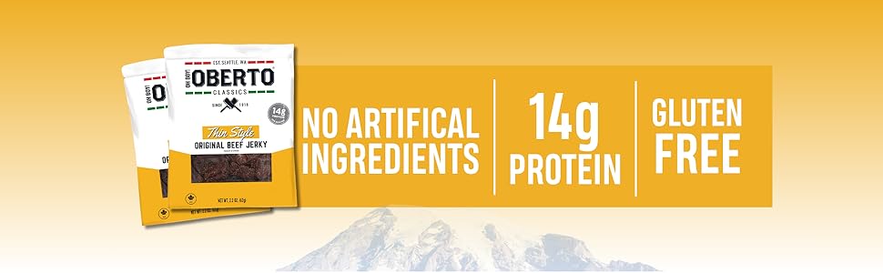 Oberto Classics Thin Style Original Beef Jerky is a protein-packed snack that delivers 17g of protein and only 90 calories per 1.2oz serving. Perfect for on-the-go lifestyles, this low-fat, low-carb jerky has been a beloved choice since 1918, offering a delicious taste of the Pacific Northwest.