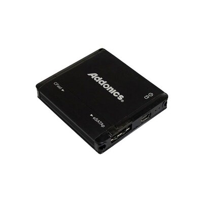 Description Addonics® CFast Card reader/writer is well suitable for connecting any CFast media to any computer via eSATA or USB 3.0 port. It is perfect to achieve much higher data throughput. Addonics® CFast Card reader/writer with eSATAp connection takes advantage of data and power from the new eSATA USB hybrid port. Engineered to access via the latest SuperSpeed USB 3.0 port or the ubiquitous USB 2.0 port. Directly powered from the USB port with the included eSATAp cable. Card reader/writer to get higher data throughput Comes with eSATA/USB combo interface Measures 0.4"H x 2.4"W x 2.6"D Features LEDs for both power and drive activity Operates at a temperature range of 0 - 70 deg C and humidity of 5% - 90% Comes with CFast card reader/writer and eSATAp cable Weighs 44 g Comes with 1 year warranty Form factor: Hot-swappable Warranty: 1 year Specifications Brand : Addonics Customizable : No Weight : 1.00 lbs. per Each