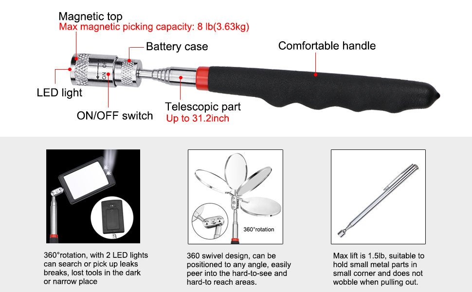 Homgaty Inspection Mirror 4pcs Telescopic Rectangular Round Magnetic Pick Up | Desertcart Slovakia