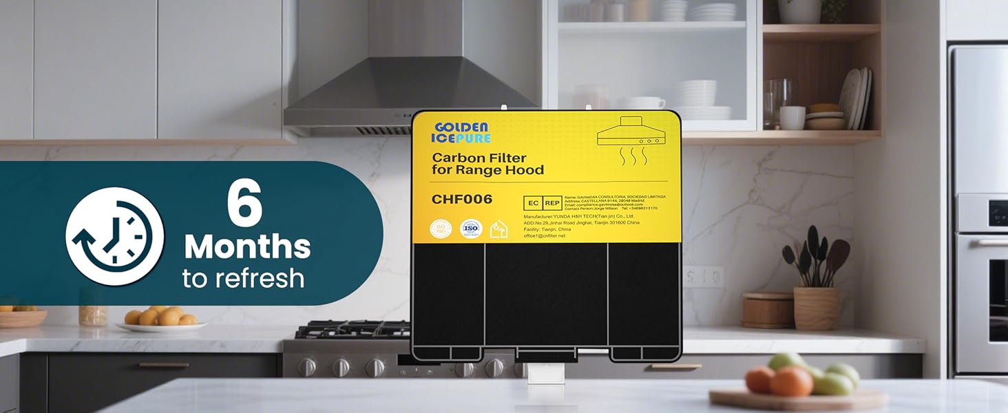 The GOLDEN ICEPURE Activated Carbon Filter set includes two high-performance filters designed for seamless compatibility with leading cooker hood brands like Siemens, Bosch, and Neff. Featuring a double activated carbon layer, these filters effectively neutralize odors, grease, and harmful particles, ensuring a fresher kitchen environment. With precise dimensions for easy installation and a recommended replacement cycle of 4-6 months, this pack guarantees sustained air purification and enhanced cooking comfort.