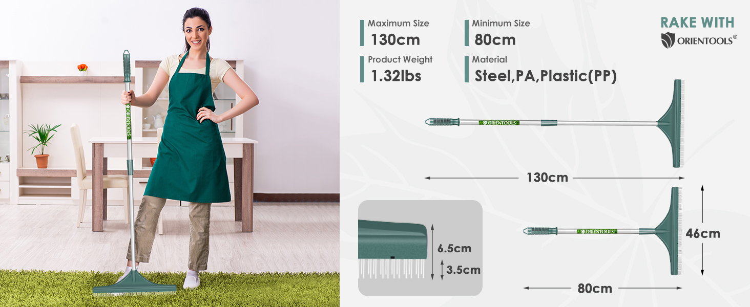 The ORIENTOOLS Artificial Grass Brush features a robust, adjustable steel handle (80-130 cm) paired with dense, flame-retardant PA nylon bristles designed for efficient debris removal on artificial turf and carpets. Its versatile design supports multiple cleaning tasks, from leaf and pet hair removal to flower bed maintenance. Lightweight and collapsible, it offers ergonomic comfort and convenient storage, backed by easy assembly and dedicated customer support.