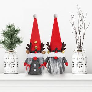 The D-FantiX 2Pack Reindeer Christmas Gnomes are handmade Swedish Tomte figurines designed to add a touch of whimsy and good luck to your home. Standing at 8 inches tall, these plush gnomes feature a heavy base for stability and are adorned with festive jingle bells and reindeer horns. Perfect for holiday decorations or as thoughtful gifts, they embody the spirit of Christmas and Scandinavian folklore.
