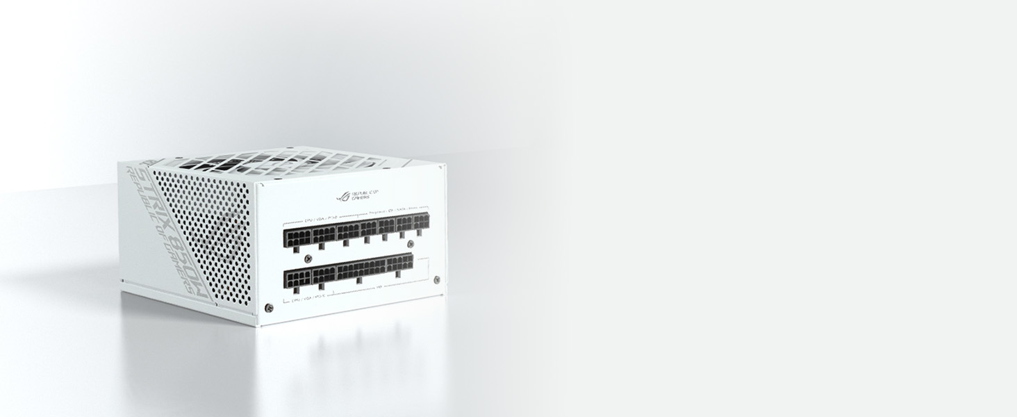 The ASUS ROG Strix 850W White Edition PSU delivers 850 watts of stable power with 80 Plus Gold efficiency, featuring advanced Axial-tech cooling with dual ball bearings and 0dB silent operation. Its fully modular white cables and sleek design elevate any build, backed by a robust 10-year warranty for long-term reliability.