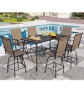 The PHI VILLA Outdoor Bar Stools Set of 4 features 30-inch tall seats with 360° swivel capability, crafted from powder-coated steel frames and breathable Textilene fabric. Designed for durability and comfort, these stools bring a modern, stylish upgrade to any patio, porch, or yard while ensuring easy maintenance and lasting outdoor performance.