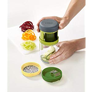 The Joseph Joseph Spiro Spiralizer is a versatile kitchen tool designed to create uniform curly noodles from a variety of vegetables and fruits. Featuring interchangeable blades, a self-aligning design, and a mess-free container base, this spiralizer makes meal prep easy and enjoyable. Plus, it's dishwasher safe for effortless cleanup!