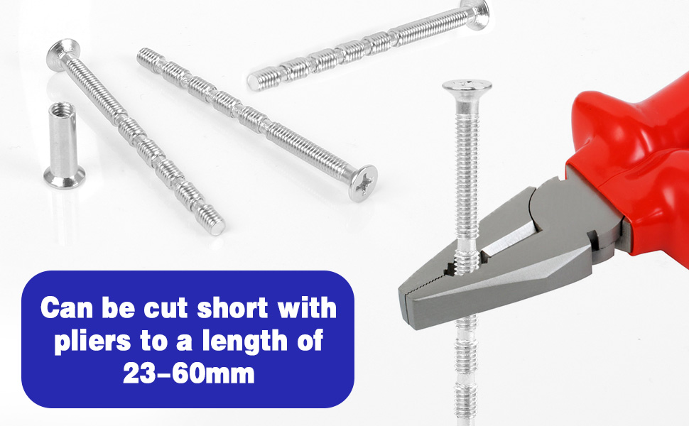 The media could not be loaded. Decent screws for door knobs or other uses. Adjustable length at 25mm, 32mm, 40mm, 46mm, 54mm and 60mm, using pliers to snap the thread. This takes a fair amount of force, and leaves a slightly ragged end, but doesn't stop the thread working as it should do. A file would clean up any debris there.Be aware that although the thread (M4), is 4mm (3.95mm approx as measured), the sleeve end measures 5mm diameter. This means you will need a 5mm clearance hole in the door knobs. Mine were 4mm, so I just drilled out slightly. The head on each end is approx 7.25mm.The sleeved ends aren't perfectly manufactured, with some of the screwdriver x's noticeably off-centre, and some of the countersunk heads off centre. This isn't likely to affect any home diy projects though. I would buy again.