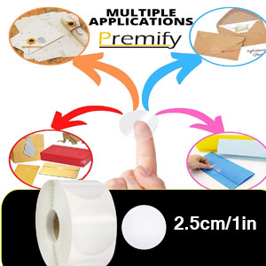 The Premify 500Pcs Clear Seal Labels are 2.5cm round self-adhesive stickers made from non-toxic polystyrene and eco-friendly glue. With a total of 500 pieces, these versatile labels are perfect for sealing envelopes, retail packaging, and crafts, offering a strong adhesive for reliable use.