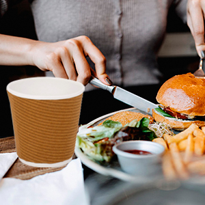 These 90 ml brown disposable ripple paper cups come in a pack of 50, featuring eco-friendly, compostable materials with heat-resistant double walls and a textured grip. Ideal for professional and social events, they combine sustainability with practical design for hot beverages like tea and coffee.