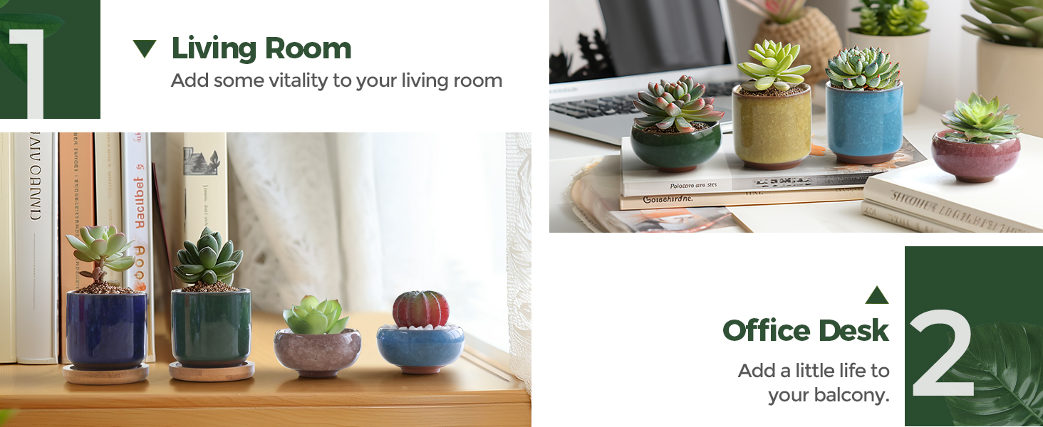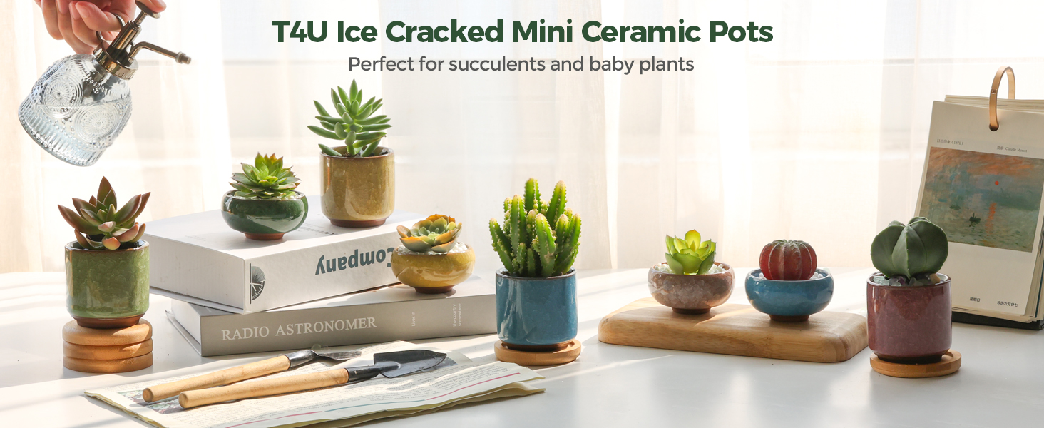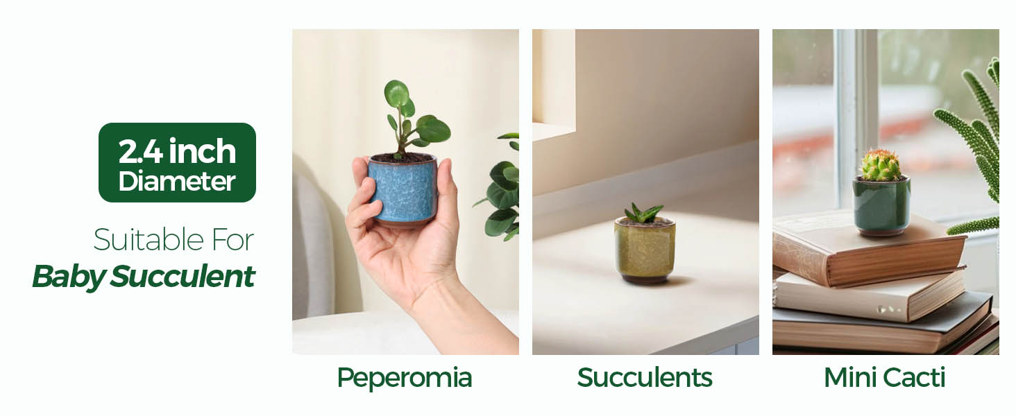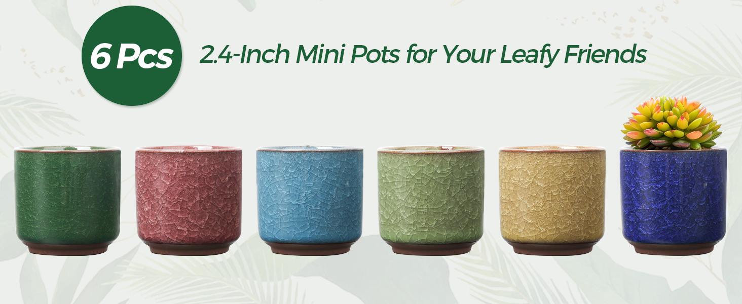 This set of six 2.5-inch ceramic succulent pots features a unique ice crack glaze finish and built-in drainage holes to promote healthy plant growth. Perfectly sized for small succulents and cacti, these handcrafted pots add a tasteful, multicolor touch to any indoor space, making them an ideal gift or décor upgrade for modern plant enthusiasts.