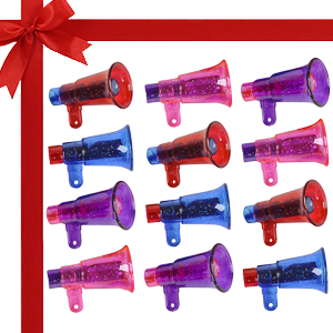 The ArtCreativity Mini Glitter Megaphone Whistles come in a set of 12 vibrant, glittery noisemakers designed to energize kids' parties. Measuring 2" x 1.5", these lightweight, durable plastic whistles produce variable sound levels and include a hole for attaching cords. Perfect as birthday favors, game prizes, or goodie bag fillers, theyβre crafted for kids aged 3 and up to spark joyful, expressive fun.