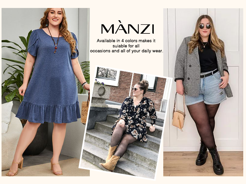 MANZI2 Pairs 70 Denier Women's Plus Size Tights Stretch Opaque Control Top Tights