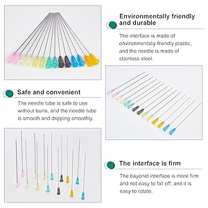 The FINGERINSPIRE 24-piece mixed size blunt tip syringe needle set features 8 gauge sizes from 16GA to 5GA with color-coded tips, 4.6-inch stainless steel dispensing tips, and threaded luer lock compatibility. Each needle is acidified and polished for consistent, reliable performance, making it perfect for precise refilling of liquids, oils, glues, and other fluids across professional and craft applications.
