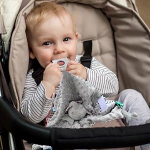 The UNMOT Baby Comforter Blanket is a 28x28cm soft, breathable, and skin-friendly plush designed for newborns. Featuring interactive crinkle foil, a bell, and satin loops, it stimulates sensory development while providing soothing comfort. Lightweight and machine washable, it’s perfect for home or travel and includes a built-in teether to ease teething discomfort. Ideal as a thoughtful gift, this durable comforter combines safety, functionality, and adorable design.