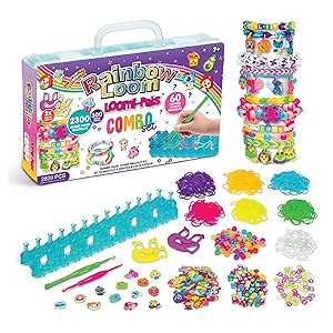 The Rainbow Loom® Loomi-Pals™ MEGA Set is a comprehensive crafting kit designed for children aged 7 and up. It includes 60 assorted LP charms, 5600 colorful bands, 150 alpha beads, and 150 pony beads, all neatly organized in a convenient carrying case with 23 compartments. This set not only provides endless creative possibilities but also promotes fine motor skills and cognitive development through engaging crafting activities.