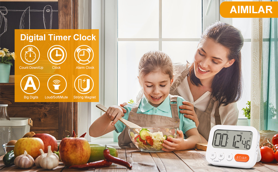 The AIMILAR Digital Kitchen Timer AY4064 offers a multifunctional timing solution with a massive 99-hour countdown, loud adjustable alarms up to 90dB, and a large, easy-to-read display. Its memory function and versatile placement options make it perfect for kitchens, classrooms, gyms, and offices, ensuring you never miss a beat.