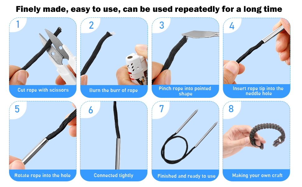 The Paracord Knotters Tool Marlin Spike set includes a durable marlin spike and three stainless steel needles, designed for various crafting needs. With multiple sizes and an ergonomic design, these tools ensure easy knotting and weaving for paracord, shoelaces, and leather projects. Built to last, they are perfect for both DIY enthusiasts and professionals.
