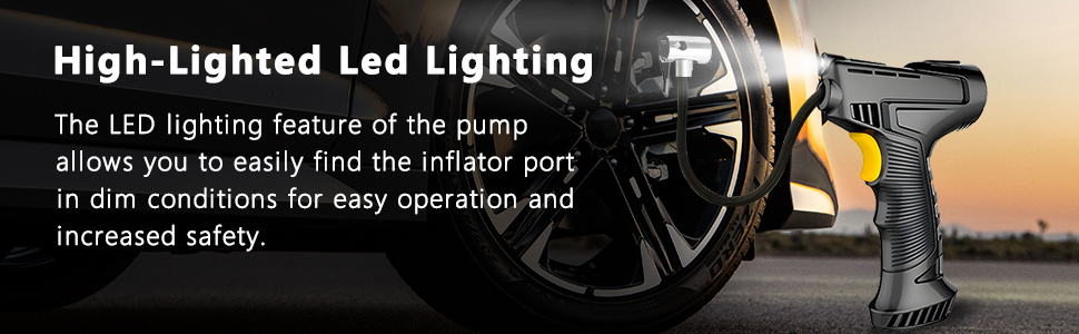 QST EXPRESS Cordless Tire Inflator Portable Air Pump,Handheld 120W Rechargeable Air Compressor with 150PSI with Emergency LED Light for Car, Bicycle, Balloons and Other Inflatables