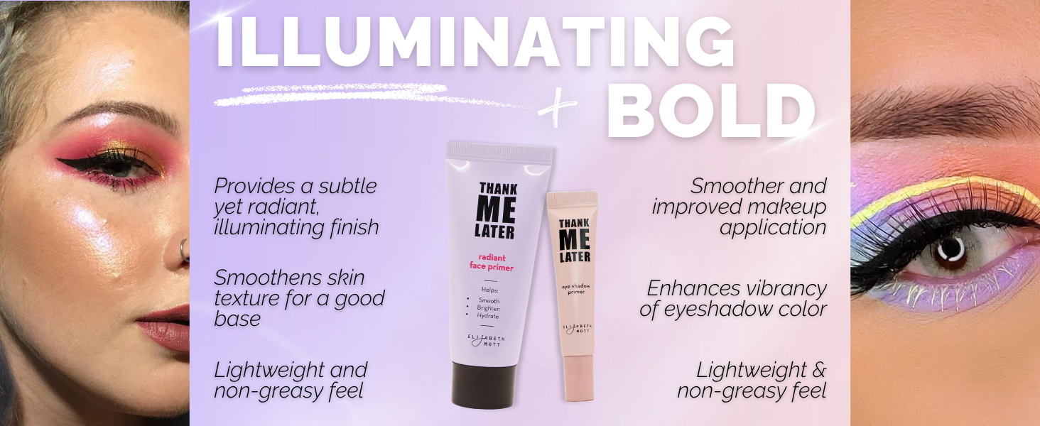 The Elizabeth Mott Holiday Gift Bundle features the Thank Me Later Eye Primer and Illuminating Face Primer, designed to enhance makeup longevity and provide a radiant finish. Proudly cruelty-free and made with premium Korean ingredients, this set is perfect for gifting or treating yourself this holiday season.
