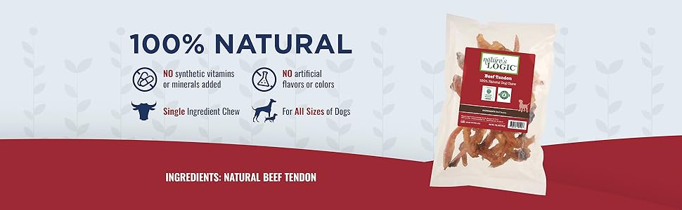 NATURE'S LOGIC All Natural Beef Tendon Chew - 100% Natural Treats for Dogs - Promotes Dental Hygiene - Recreational Chewing Dog Chews for Large and Small Breeds, Made in USA - Beef Tendon Treat