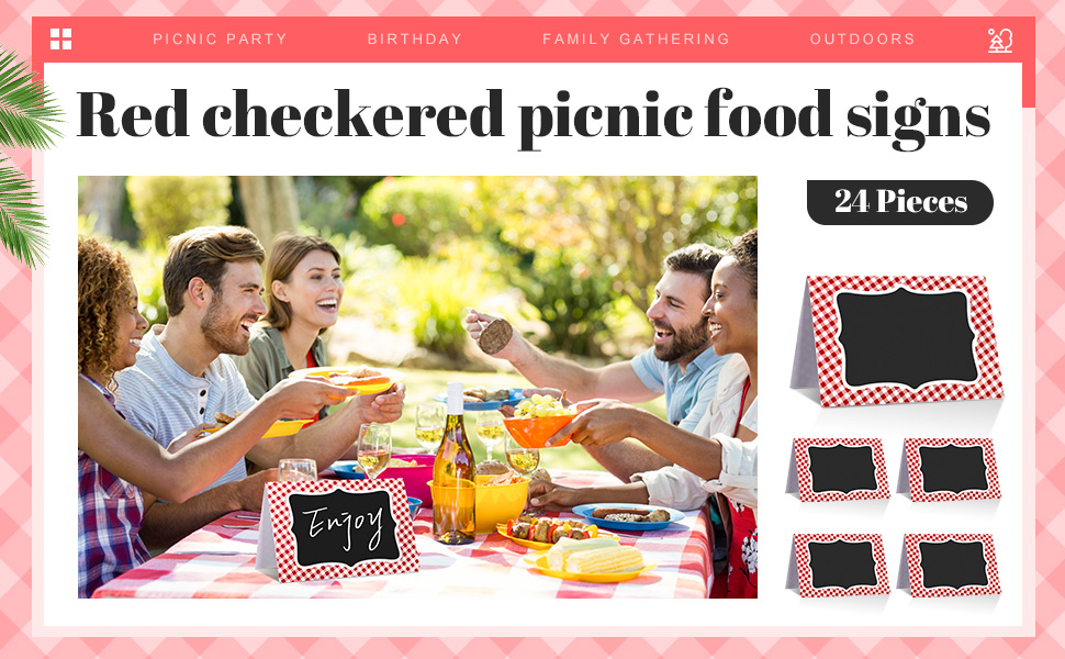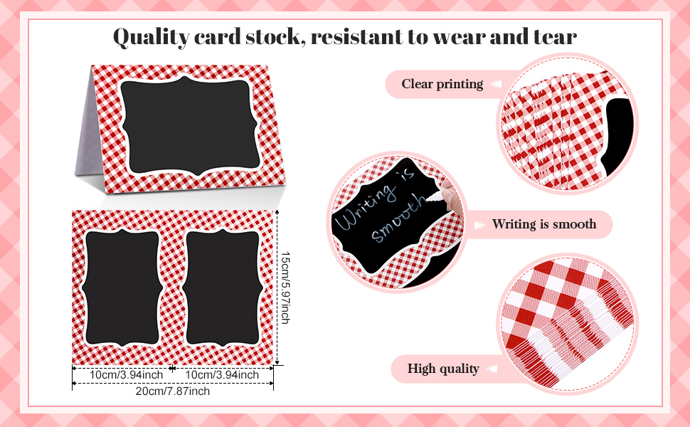 TaoBary’s 24-piece set of 4x6 inch red gingham picnic tent cards offers a stylish, durable, and reusable way to label food and tables at any event. Featuring double-sided writable surfaces and a classic checkered design, these cards are perfect for adding a personalized, professional touch to weddings, BBQs, and corporate gatherings alike.