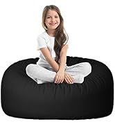 Our kiddo has a zillion stuffed animals. 1 zillion. While ageing-out of *most* of them, one highly responsible choice at-hand would be give-away all but a few of the most cherished buddies. However, attachment(s) at this age (10) seems to be a hell of a thing...& ridding ourselves of any of them seems to be met with a mix of tears & outrage. This resembles my behavior (@ age 49) at the thought of taking my 35 year old rusty carpentry tools (all of which have been duplicated...many times over) to Goodwill. It seems that to 'punish' the offspring would make me some sort of hypocrite.... For shame. Enter: Gaming - and - this thing. Keep the stuffy's while hiding them in plain sight! Friggin genius!! We bought this bag (not lying by saying we needed the really big one), filled it with every stuffy in the house, and placed it in the playroom. OK, that's wrong. 1) We purchased the bag. 2) We placed the bag in the playroom. 3) We brought all the friends to the bag, then filled it. 4) Because once this bag is filled, there is no "placing" it anywhere...not without a tractor & front end loader. 'Dragging' is about the best you can do. Anyway, did I mention how awesome this thing is? Firstly, all 9-zillion creatures fit in the bag. And the material quality, stitching, and zipper are all of good quality. This bag has 'base' material (ours is black) stitched together to the colored/soft material. With the weight and dragging we put into this bag, I'd have known quickly if it was going to rip. After nearly 2 months of use = no rips. 3 ten year olds can easily fit (aka: jump, flop, kick, dive-bomb) on this thing. If they'd sit still (ha, right!) you could put 4 on it. Two adults can go on it with room to spare. I'm fairly jealous of my genetic counterpart because game-play on this bag is better than any couch or chair. (I steal naps on it during school). The kids LOVE being on this bag...whether they are on a screen or not. If they are in that room - they are on this bag. Oh, and the exterior material (probably poly-something) has this lovely extra-soft mossy carpet-ty feel. Note: We have yet to clean/wash ours (no accidents yet)...this bag looks like it'll hold up to a machine-clean...but the jury is still out. Obvious drawbacks have little to do with the item itself. A) Sizing: There are several options & we got lucky to have not over/under guessed our needs. Wouldn't be hard to get it wrong on a first-go, either too small or too big. B) What goes in it (part 1): For us, it turns out that filling a huge bag with stuffed animals and then laying around on it = works. Like, fantastically. Got no idea what it would be like if you put old clothes or rocks inside...am guessing that non-fluffy interior materials may result in a not so nice experience. C) What goes in it (part 2): I would not choose to put anything nice/sentimental inside the bag. If you have kids or if you plan to sit on this thing yourself, then you know why. D) Where it goes. Again, think 'big.' We have a converted garage (aka: playroom) that's about 80% kid & 20% adult. It fits just fine there because there's plenty space. No way this thing could go in our kids room. It's literally half-a-bed. E) Safety: OK, so there's not really much to any 'suffocating' or 'crushing' concerns; probably very little on the life-or-death scale. But...within the first 5 minutes of set up, my little genius entered the bag and pulled up the zipper. AKA: Great hiding place - but with no escape. There is no interior zipper handle. Anyway, letting the screaming go on for a brief time was kinda funny & satisfying...and was a perfect segway to discuss the pros & cons of government-sanctioned imprisonment. Then again, this could have been a 'scary; panicked' issue had an adult not been around (seriously; be careful). F) Style: To each his/her own. Sure, I can envision a whole house of bean bags being displayed on the cover of this months Vogue or Cosmo. However, *generally speaking* and (as not to offend) - this is a child's item. OK, maybe this bag is also something fun for grown-ups to use from time to time. It does look like a cross between an oversized prune and a burnt marsh-mellow, with colors. It's lovely for our playroom. Not so much elsewhere. Enjoy. You will be happy with this cover.