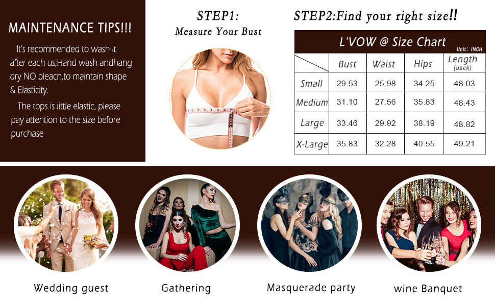 I liked that this dress was comfortable to wear, fabric was soft and stretchy and forgiving. Not the highest quality fabric, but pretty. I also liked that the length was not so long that it dragged in floor (I’m 5’2”) and the elastic that kept it in place on my chest. Good purchase for the price.