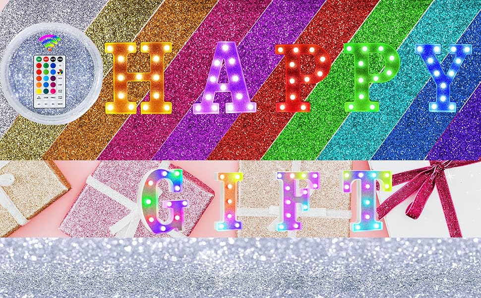 The Vimlits Colorful Light Up Letters are a stunning decorative solution, featuring glittery LED lights that offer 18 color options and 7 dynamic lighting modes. Perfect for parties, holidays, or cozy nights in, these versatile letter signs can be easily displayed on tables or hung on walls, all controlled by a handy remote.