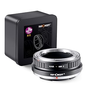 The K&F CONCEPT K/AR to Nikon Z adapter enables manual Konica AR lenses to mount seamlessly on Nikon Z mirrorless cameras, offering full manual focus and aperture control. Lightweight and compact, it requires no electronic contacts and supports key Nikon Z models like Z 7, Z 6, and Z 50, making it the perfect bridge between classic glass and contemporary tech.