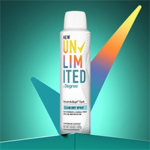 Last month I was staying at a hotel. The bathroom had all the usuals... little bar of soap, little lotions, little toothpaste, etc. And it also had a little canister of this New Unlimited by Degree antiperspirant, so I tried it. First of all, let me tell you that I am from the coastal south, so when the temps are over 100 degrees for a couple of months, yes, we all sweat.... a lot! It sprays on easily, the smell isn't overpowering, and it dries almost instantly. It does leave a bit of residue on darker clothes but that is easily removed with a dry washcloth. It claims that it will last for three days, and I believe it would. It helped keep me so much dryer in this 100 degree weather than anything I've tried before. It's brilliant!The sample was great and I thought I'd buy the larger can when I got back home. The problem with that was that I couldn't find it anywhere... not in the drug stores, big box stores, or grocery stores. It was nowhere to be found! Amazon has it so life is good. I did see other reviews that said the solid version would probably be a better option as I would not have to buy spray as often, but I'm happy with the spray, the tiny 1 ounce sample lasted me almost 5 weeks.