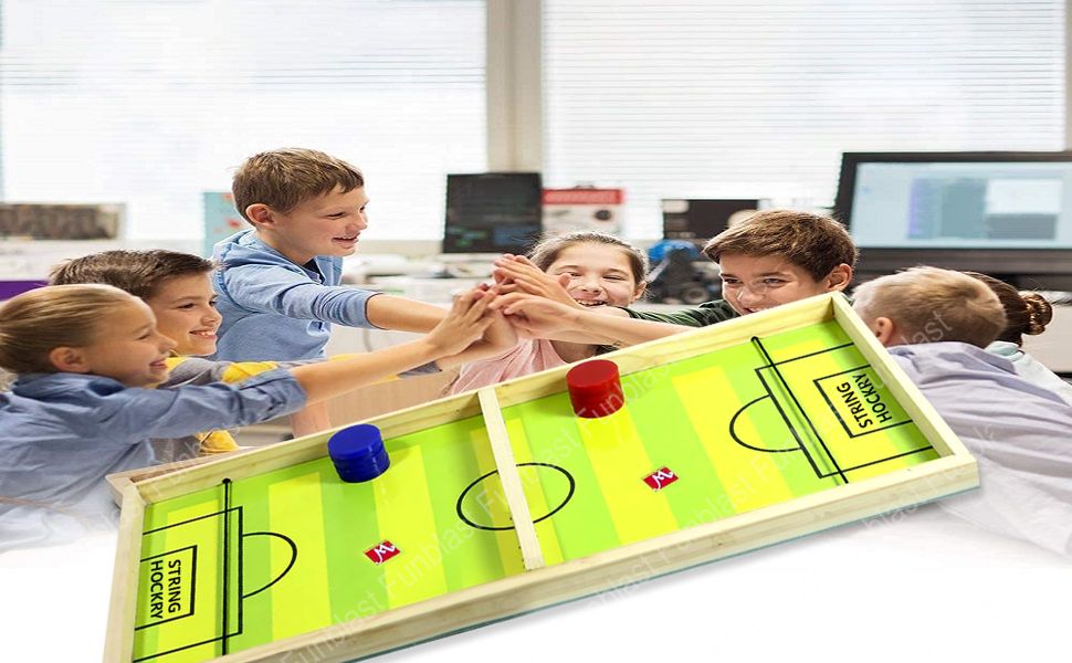 The FunBlast String Hockey is a dynamic table board game designed for 2 players, featuring a solid wood construction for durability and an engaging gameplay experience. Measuring 56 cm in length, this game is perfect for family gatherings or friendly competitions, promoting spatial awareness and providing endless fun for both kids and adults.