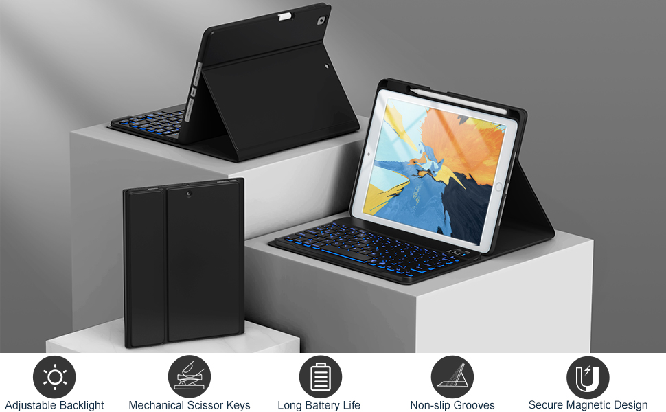 Hamile iPad Keyboard Case - iPad 9th 8th 7th Generation Case with Keyboard 10.2", 7 Colors Backlit Detachable Folio Keyboard Cover with Pencil Holder for iPad Pro 10.5" / iPad Air 3rd Gen (Black)