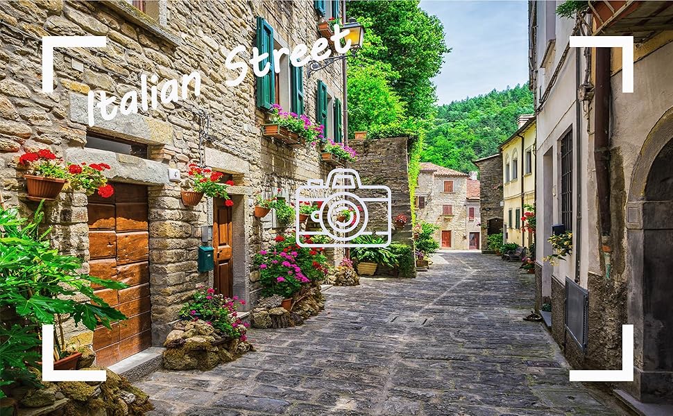 CORFOTO Fabric 7x5ft Italian Photo Backdrop Tuscany Italy Bistro Photography Background Old Village Town Alley Scenery Europe Landscape Photoshoot Travel Theme Party Supplies Wedding Decorations