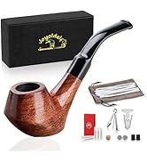 This Joyoldelf Wooden Tobacco Smoking Pipe Set features a premium redwood pipe with a carbon-lined interior for enhanced heat resistance and durability. Its unique flat-bottom design allows it to stand upright without a stand, combining aesthetic appeal with practical use. The set includes a comprehensive cleaning kit and a stylish gift box with a pouch, making it an ideal starter pipe or a sophisticated gift for tobacco enthusiasts.