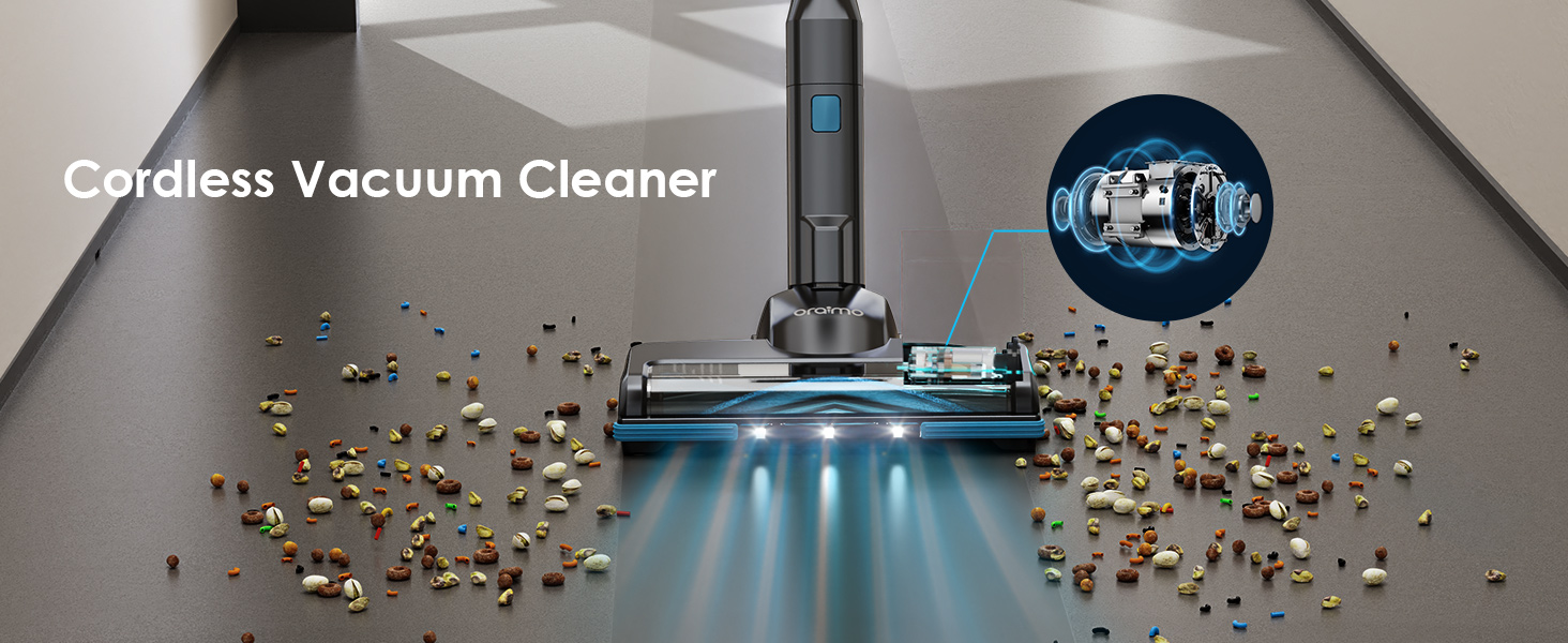 The Oraimo Cordless Vacuum Cleaner is a lightweight, 1.2 kg 6-in-1 stick vacuum featuring a powerful 160W motor and a detachable 2200mAh*6 battery delivering up to 35 minutes of runtime. Its flexible 270° rotating head with LED lights and advanced 5-stage filtration system ensures thorough cleaning on all floor types, while the self-standing design and accessory storage bracket offer convenient, drill-free storage. Ideal for busy professionals seeking efficient, versatile, and hygienic home cleaning.
