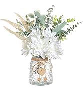 These artificial flowers look very realistic and beautiful. The colors are vibrant and the quality is great. They look perfect in my home and add a nice decorative touch. The vase is sturdy and the arrangement looks elegant. I’m very happy with this purchase and highly recommend it for home decor.
