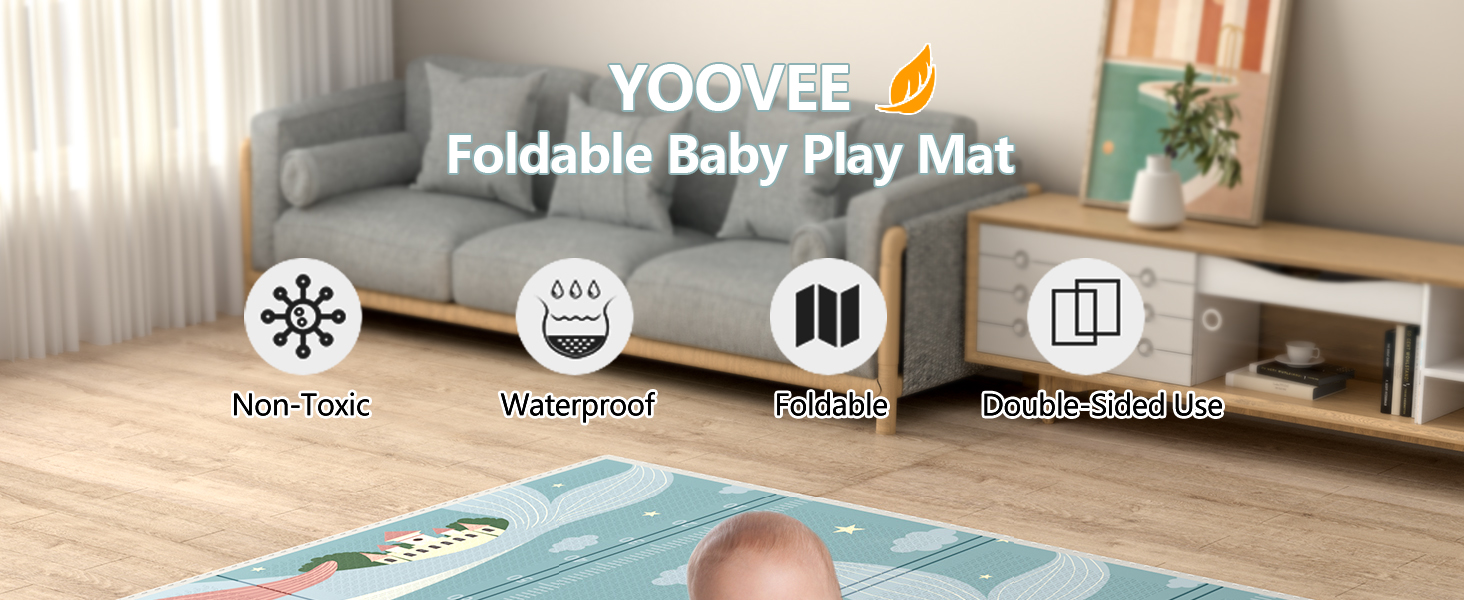 The YOOVEE Foldable Baby Play Mat is an extra-large, reversible foam mat designed for babies and toddlers. Made from non-toxic, BPA-free XPE foam with vegetable oil-based inks, it ensures safety and comfort. Its waterproof surface makes cleaning spills effortless, while the foldable design and included storage bag offer portability and convenience. Perfect for crawling, playtime, yoga, or outdoor picnics, this versatile mat combines functionality with playful aesthetics.