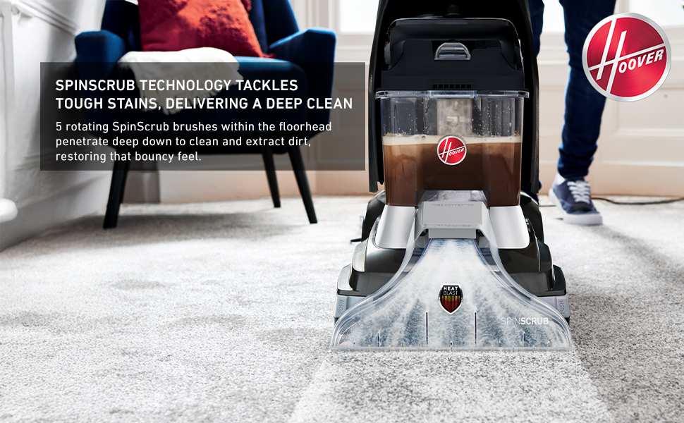 The Hoover PowerScrub XL Carpet Washer combines advanced Spinscrub technology with a large 0.8-gallon tank and an extra-long hose to deliver a deep, efficient clean. Its dedicated solution tank and Automix technology ensure optimal cleaning performance tailored to your carpet, making it the ultimate tool for professional-level carpet care at home.