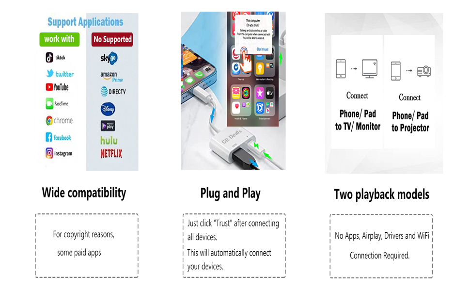 ![[Apple MFi Certified] Lightning to HDMI Adapter for iPhone, Digital AV Audio Dongle,1080P Sync Screen Cable with Lightning Charging Port for iPhone, iPad to TV/Projector/Monitor Need Power Supply](https://m.media-amazon.com/images/I/410i8GMNIrL.jpg)
