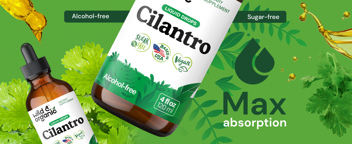 Wild & Organic Cilantro Tincture delivers 600 mg of cilantro extract per serving in a vegan, alcohol- and sugar-free formula. With 168 servings per 4 fl oz bottle, it offers a convenient 56-day supply designed to support detox and antioxidant health through a naturally sweet, glycerin-based liquid supplement.
