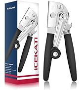 The ICEKATI Commercial Can Opener is a heavy-duty manual tool crafted from premium stainless steel with a high-carbon cutting blade. Designed for large cans, it features ultra-long ergonomic handles with eco-friendly rubber grips to reduce effort and wrist strain. A built-in magnet safely lifts lids after cutting, while the folding crank handle ensures easy storage. Ideal for professionals and seniors seeking durability, comfort, and efficiency in one sleek kitchen essential.