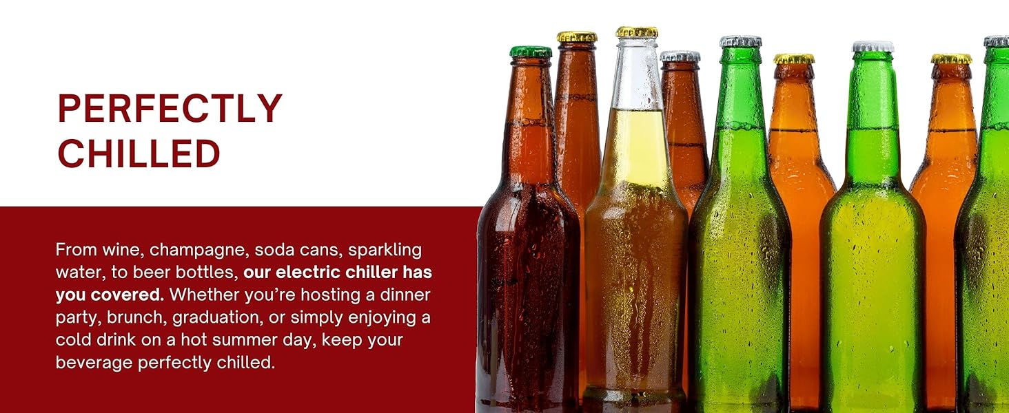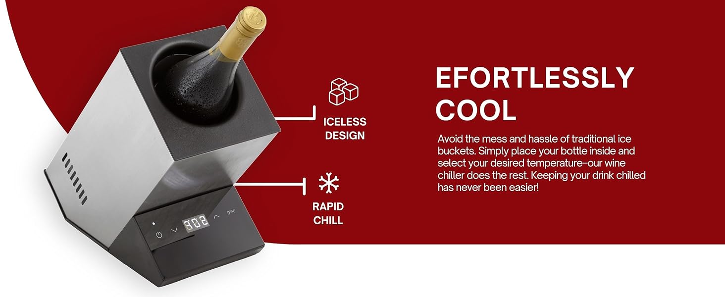 The Modern Innovations Electric Wine Chiller is a sleek, stainless steel appliance designed to chill a single 750ml bottle of wine or other beverages quickly and quietly. With an LED touch display for temperature control and a versatile design that accommodates various bottle types, this chiller is the perfect addition to any wine lover's kitchen or home bar.