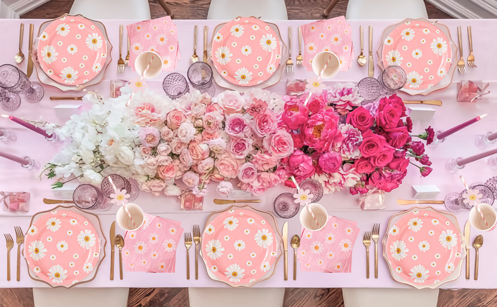The EASY JOY 80 PCS Daisy Party Decorations set offers a stylish and cohesive pink daisy-themed tableware collection, including plates, cups, napkins, and straws. Crafted from premium, food-safe paper, this durable and eco-friendly kit is designed for hassle-free celebrations like birthdays, baby showers, and garden parties, delivering both charm and convenience in one complete package.