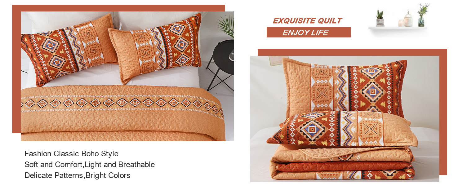 Boho Quilt Set Queen Size 3 PCS Burnt Orange Quilt Bedspread,Lightweight Geometry Printed Coverlet Set with 2 Pillowcase,Soft Bohemian Bedding Set Queen 90"×96"