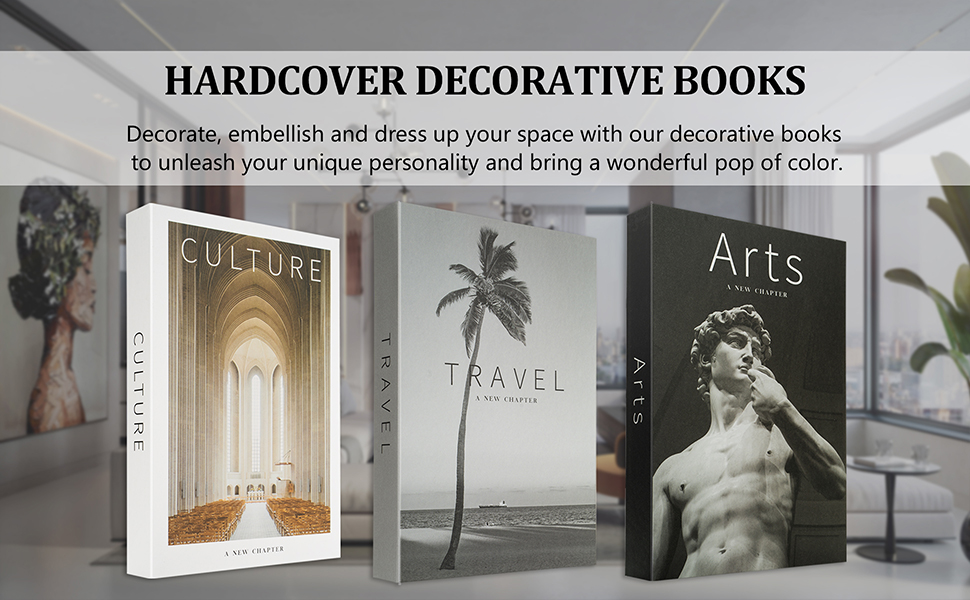 The USTOTOP Decorative Books Set includes three faux books measuring 9.45 x 6.1 x 1.35 inches, crafted from premium coated paper and sturdy cardboard in elegant deep colors. Designed to enhance any home or office space, these durable decorative books can be stacked or displayed vertically, complemented by included stylish cards for added personalization. Ideal for elevating your decor or gifting to design-conscious professionals.