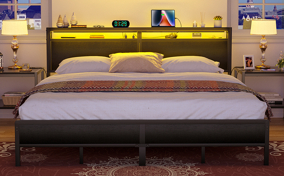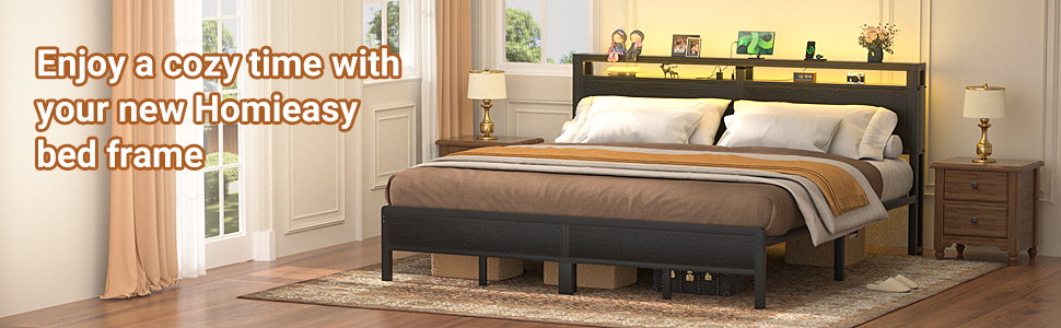 Homieasy King Size Bed Frame With Headboard And Led Lights | Desertcart Slovakia