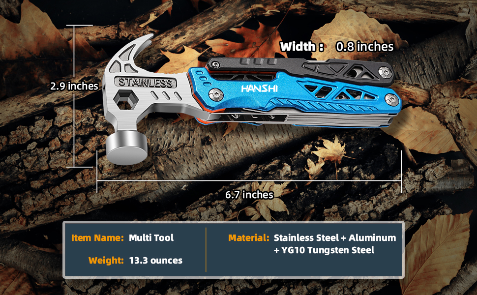 HANSHIReplaceable Wire Cutter Hammer Multitool with Nylon Sheath for Outdoor,Camping,Survival,Hiking,17 In 1 Pocket Multi Tool with Spring-Action Plier,Knife,Flint Rod,Safty Whistle for Gift