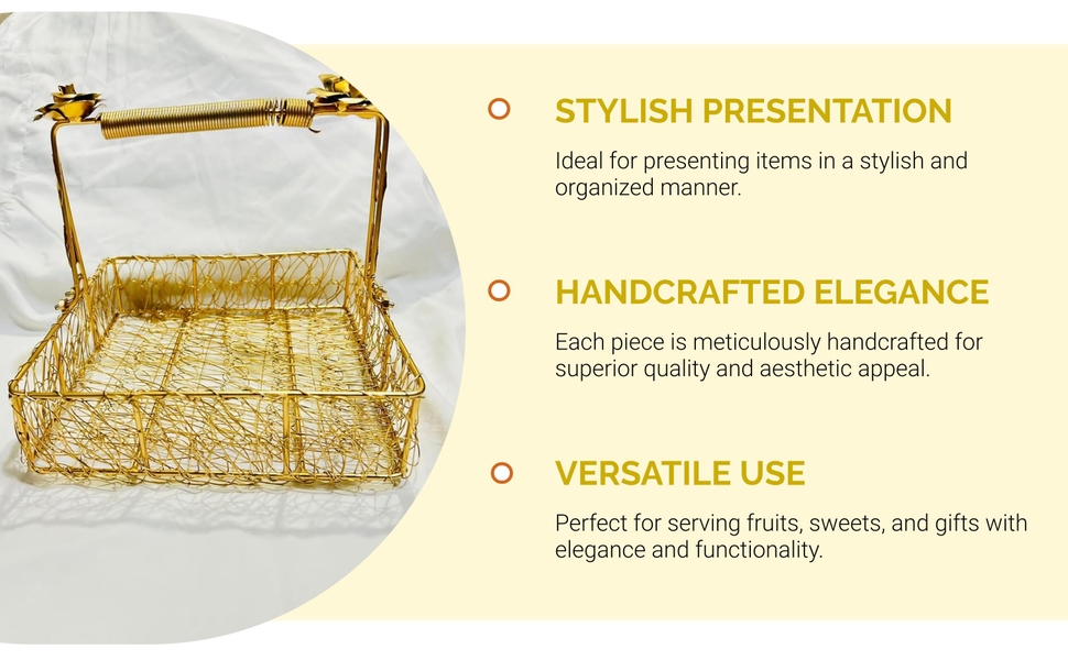 The DESIGN MAGNIFIQUE Metal Mesh Wire Square Hamper is an 8-inch handcrafted, rose gold lacquered metal basket designed for elegant gift packing and serving. Lightweight yet sturdy, it’s perfect for festive occasions like weddings, Diwali, and birthdays, combining artisanal craftsmanship with versatile functionality.