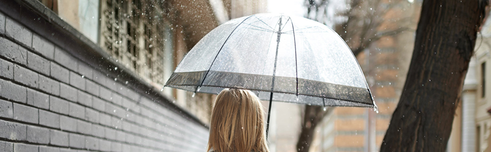 ThreeH Clear Bubble Umbrella Easy Grip Handle Sturdy Plastic Transparent Dome 8 Ribs Auto Open Stick Rain Umbrella